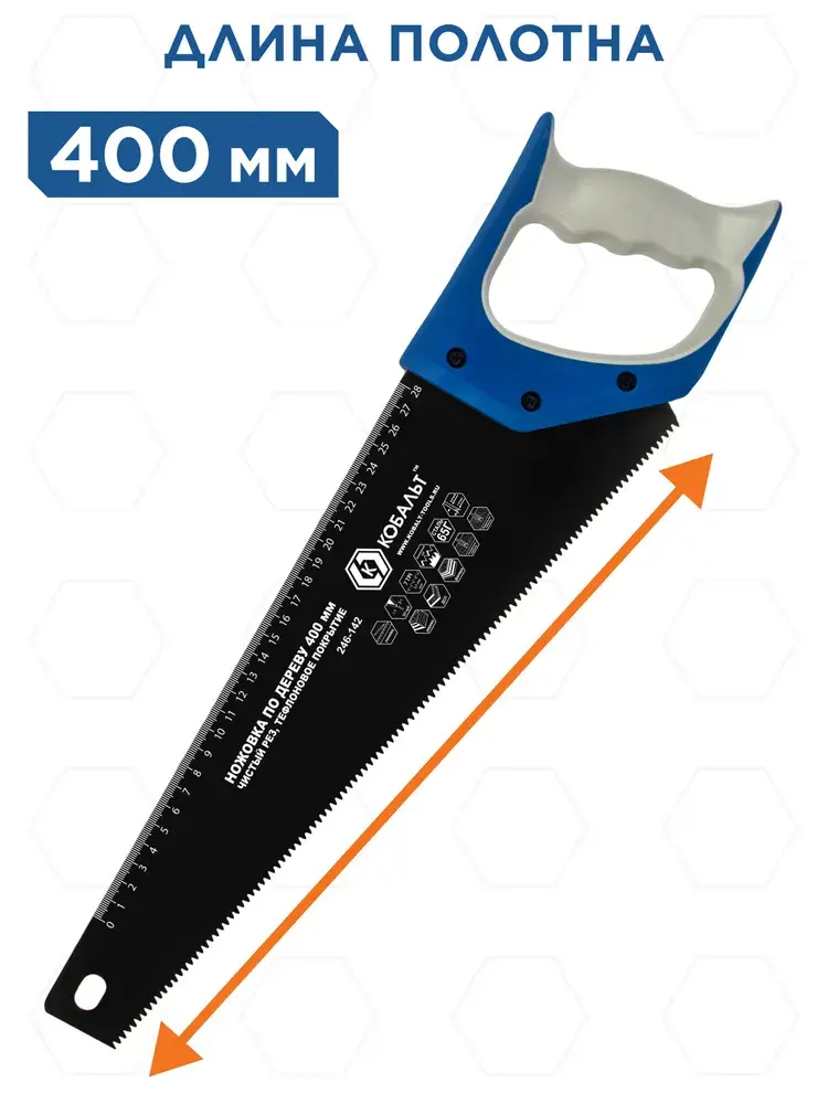 Невероятная ножовка "КОБАЛЬТ" — ваш идеальный помощник! Работает быстро и легко благодаря 3D заточке зубов и их уникальному тефлонованию. Закаленная режущая кромка сохраняет остроту дольше стандартной. Укороченные 7 TPI зубы идеально подходят для древесины. Длинна полотна – мощные 400мм, а удобная двухкомпонентная ручка обеспечивает надежный хват и комфорт при работе. Сделайте выбор профессионалов – выберите "Кобальт"!
