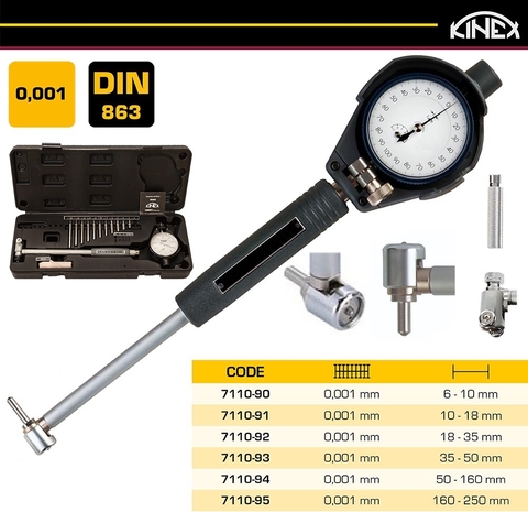Нутромер индикаторный НИ 0,001мм 18-35мм DIN863 Kinex 7110-92 (В) - предназначен для измерения диаметров отверстий, размеров пазов, в том числе и в труднодоступных местах