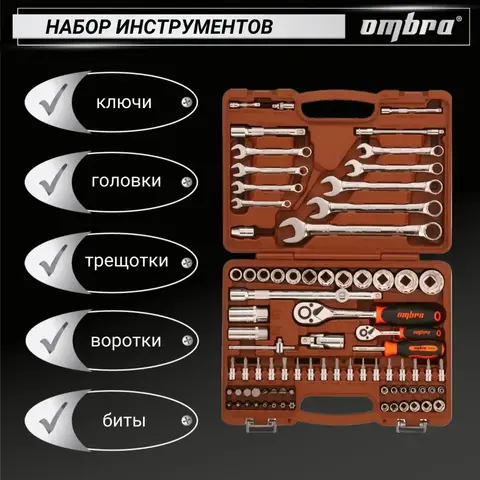 Набор, по своей комплектации и области применения аналогичен набору OMT82S, но содержащий в своем составе 12-гранные торцевые головки 1/2"DR, что облегчает проведение работ в труднодоступных местах за счет более удобного позиционирования головки на крепеже и одновременно позволяя обслуживать резьбовые детали с 12-гранным рабочим профилем.