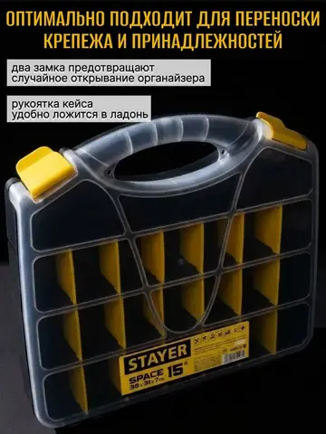 Органайзеры "SPACE-15" от бренда STAYER — ваш надежный помощник в создании идеального порядка! Используйте удобные пластиковые ящики для рационального распределения пространства дома или на даче. Прочные стенки надежно сохранят ваши вещи, а компактные размеры позволяют легко перемещать органайзер даже в одиночку. Вместительные и практичные системы хранения STAYER подарят вам свободное пространство и порядок без лишних хлопот!