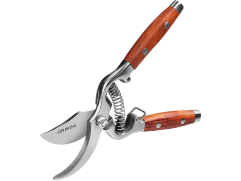 Секатор GRINDA PROLine P-15, цельнокованый из нержавеющей стали, с деревянными рукоятками, 210 мм