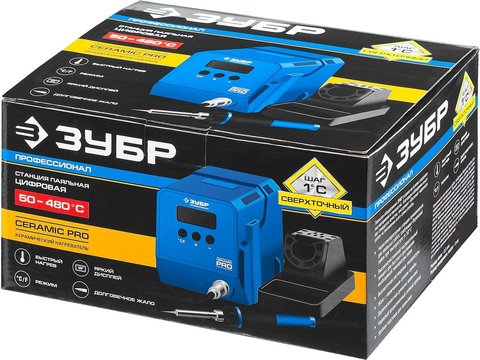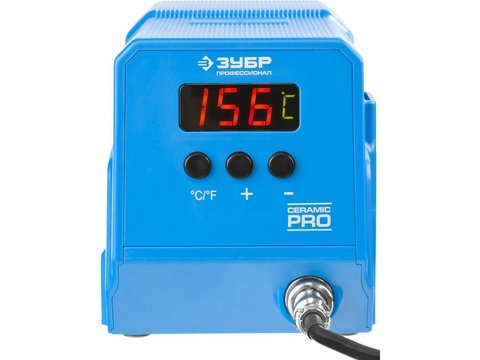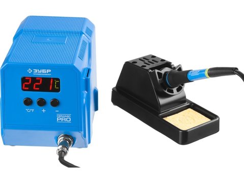 Паяльная станция ЗУБР "ПРОФЕССИОНАЛ" низкотемпературная цифровая с ЖК дисплеем, керамический нагреватель, диапазон 50-480°C, 60Вт. Паяльная станция ЗУБР 55336, предназначена для пайки проводов, работы с электронными деталями. Паяльник оснащен медным жалом со специальным покрытием, обеспечивающим качественную пайку. Легкая пистолетная эргономичная рукоятка. Компактный размер. Жало со специальным покрытием.