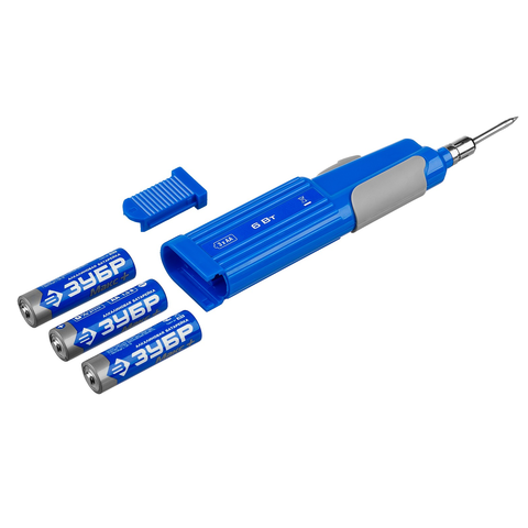 Паяльник ЗУБР "Профессионал" беспроводной на батарейках, высокотемпературное жало, 3xAA, 6Вт.