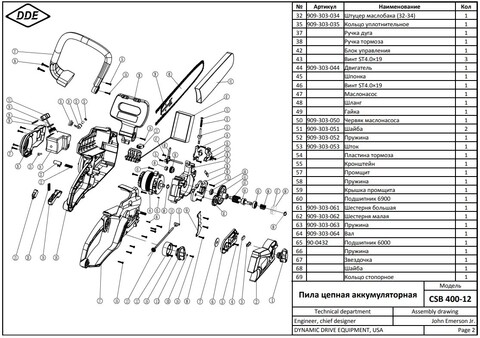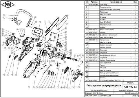 Пила аккумуляторная цепная DDE BlueTech CSB 400-12" (шина 30 см, 3/8"PM-45-1,3, SDS, без ЗУ и АКБ)
