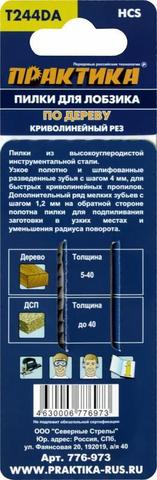 Пилки для лобзика по дереву, ДСП ПРАКТИКА T244DA 100 x 75 мм, криволинейный рез, HCS (2шт) (776-973)