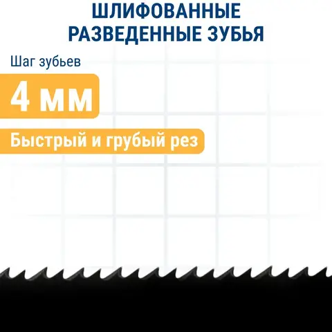 Пилки для лобзика по дереву, ДСП ПРАКТИКА тип T1044DP 250 х 225 мм, быстрый рез, шаг 4мм, (911-253).