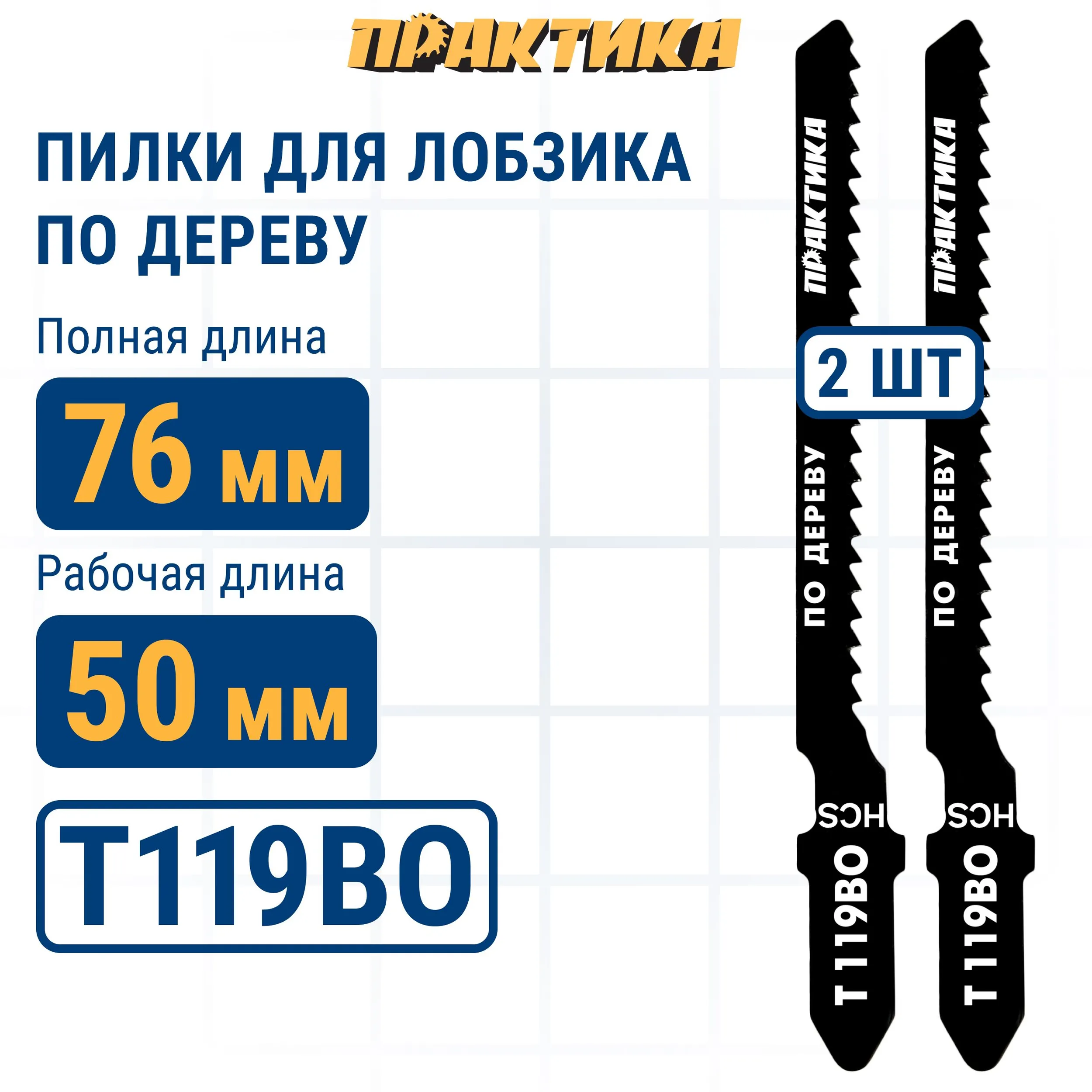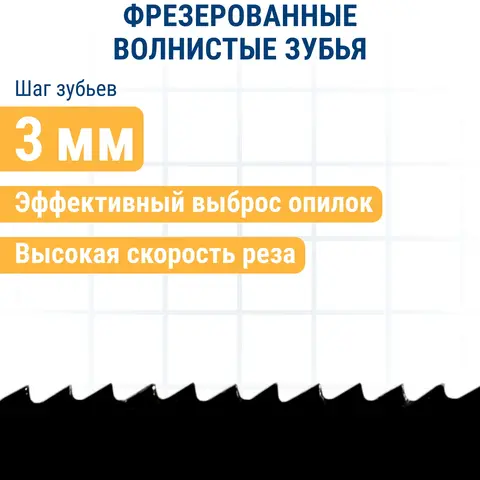 Откройте для себя идеальные пилки для электролобзика Практика серии Т119ВО! Высококачественная высокоуглеродистая сталь обеспечивает долговечность и надежность каждого реза. Волновые полотна с особым фрезерованным профилем зуба шагом 2мм гарантируют чистый быстрый криволинейный рез даже в самых сложных местах. Идеально подходят как для мягкой древесины так и для твердых материалов типа ДСП – два варианта уже ждут вас в наборе! Набор включает две надежные пилки размером 76x50 мм – этого достаточно чтобы воплотить все ваши творческие идеи и решения в жизнь!