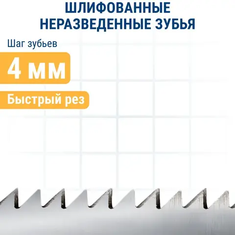 Коническая шлифовка зубьев для аккуратных и чистых распилов в древесине и пластике.