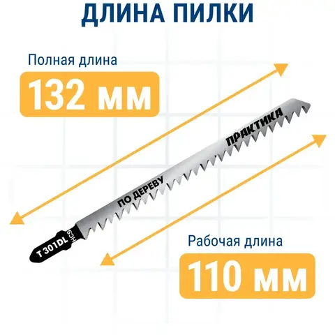 Пилки для лобзика по дереву, ДСП ПРАКТИКА тип T301DL 132 х 110 мм, быстрый рез, HCS (2шт.) (035-813)
