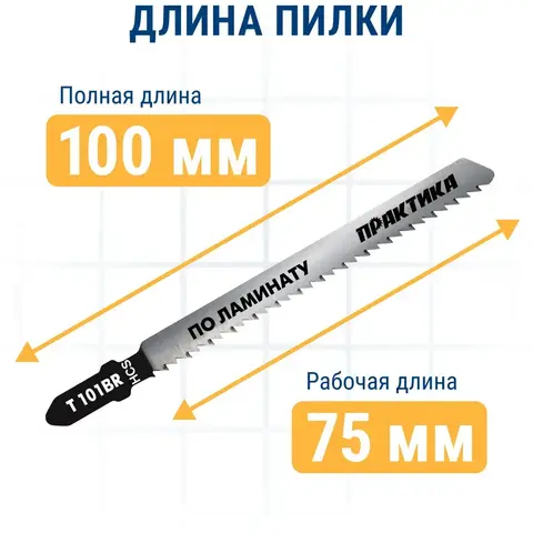 Пилки для лобзика по ламинату ПРАКТИКА дереву, ДСП, тип T101BR 100 х 75 мм, обратный зуб, HCS (2шт.) (034-441)