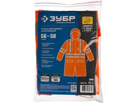 ЗУБР р.56-58, на молнии, нейлон, сигнальный цвет, плащ-дождевик, Профессионал (11617-56)