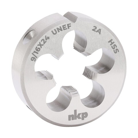 Профессиональная плашка NKP 9/16"-24 UNEF по стандартам DIN EN 22568 из высокопрочной стали HSS с твердостью 60 HRc обеспечивает точное нарезание качественной наружной резьбы. Длинное износостойкое режущее лезвие диаметром 38 мм и общей длиной 10 мм оптимально подходит для работы с материалами средней твёрдости. Удобна в использовании, долговечна и эффективна – залог качественного выполнения работ!