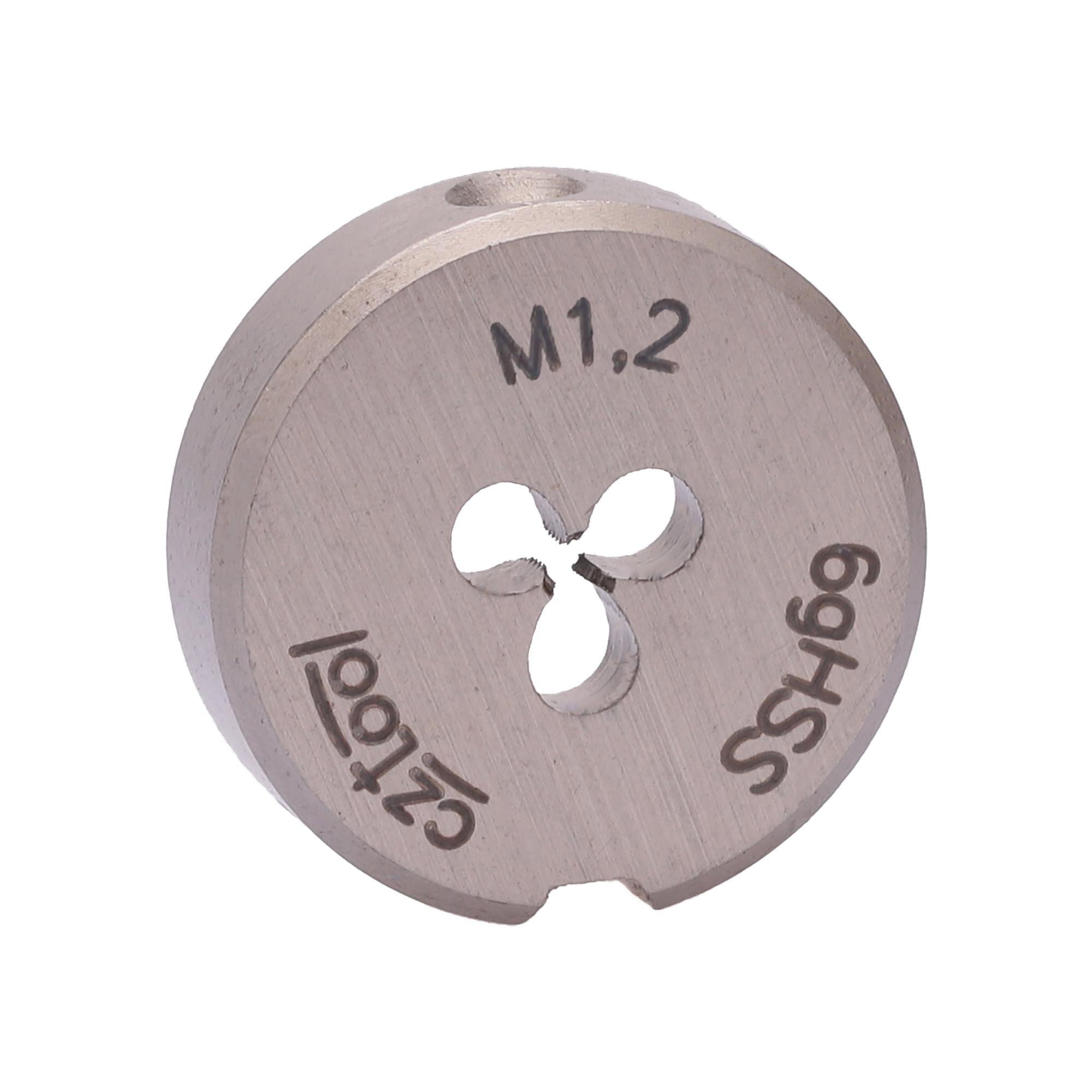 Профессиональная плашка серии CzTool производства компании Bucovice Tools (Чехия). Исполнена по стандарту DIN EN22568 с углом заточки 60°, класс точности 6g. Подходит для работы с метрической резьбой M1.2 шаг 0,25 мм. Высота гайки — 5 мм.