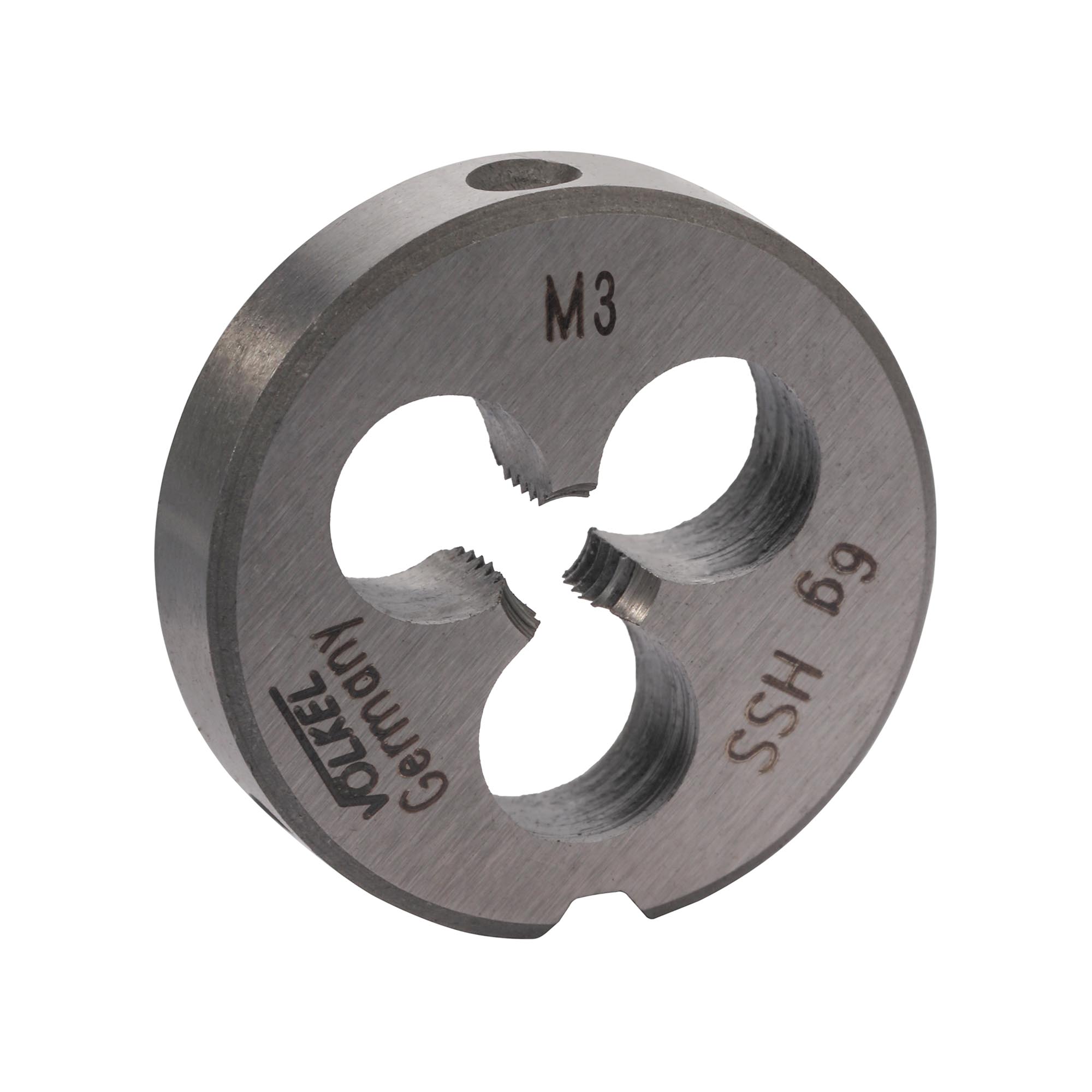 Плашка Volkel предназначена для создания метрической резьбы, с углом профиля 60 градусов. Изготовлена из высококачественной быстрорежущей стали HSS, которая гарантирует прочность и износостойкость. Подходит для обработки заготовок, выполненных из нелегированной и низколегированной стали, алюминия, меди, бронзы, цинка, с пределом прочности до 800MPa.