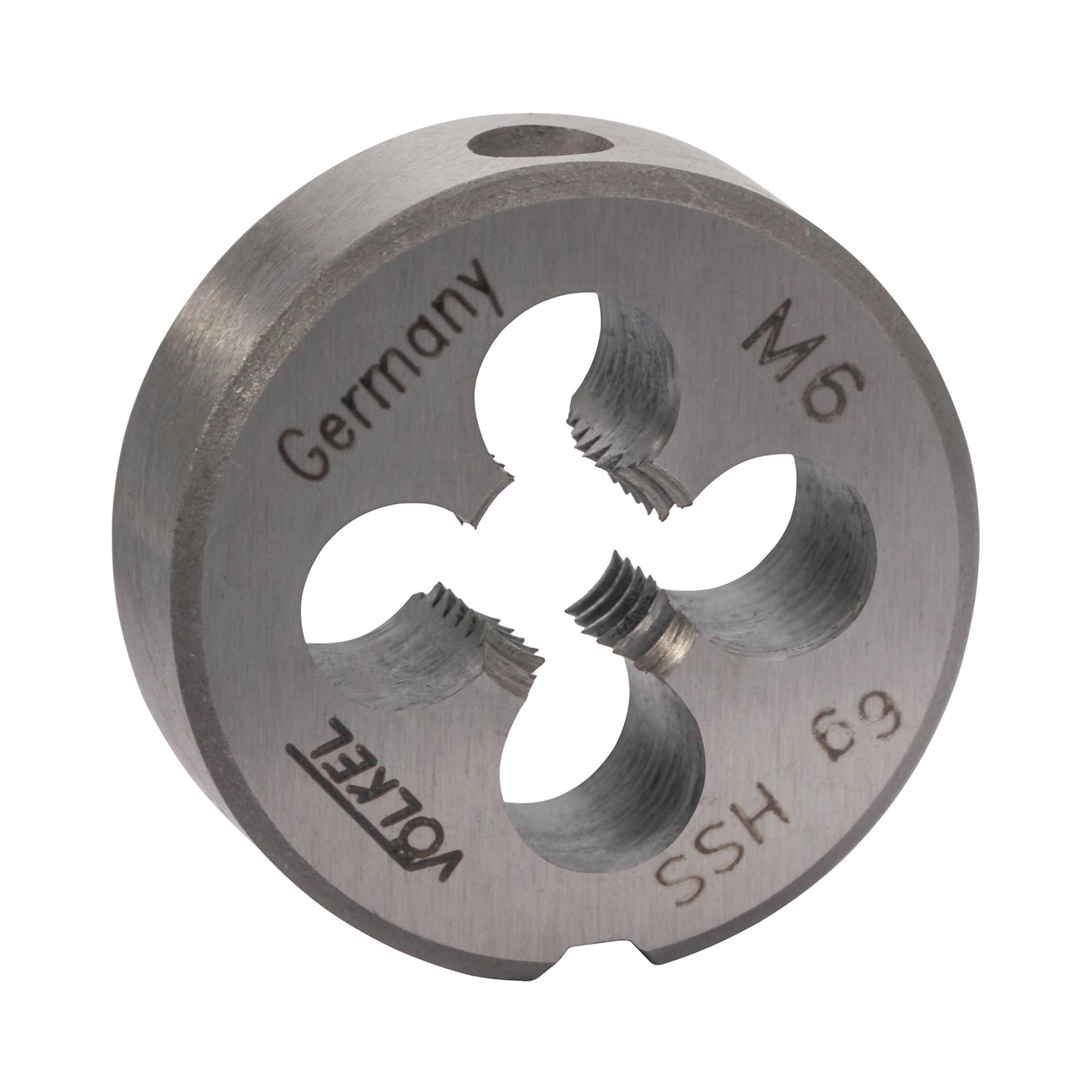Плашка Volkel предназначена для создания метрической резьбы, с углом профиля 60 градусов. Изготовлена из высококачественной быстрорежущей стали HSS, которая гарантирует прочность и износостойкость. Подходит для обработки заготовок, выполненных из нелегированной и низколегированной стали, алюминия, меди, бронзы, цинка, с пределом прочности до 800MPa.