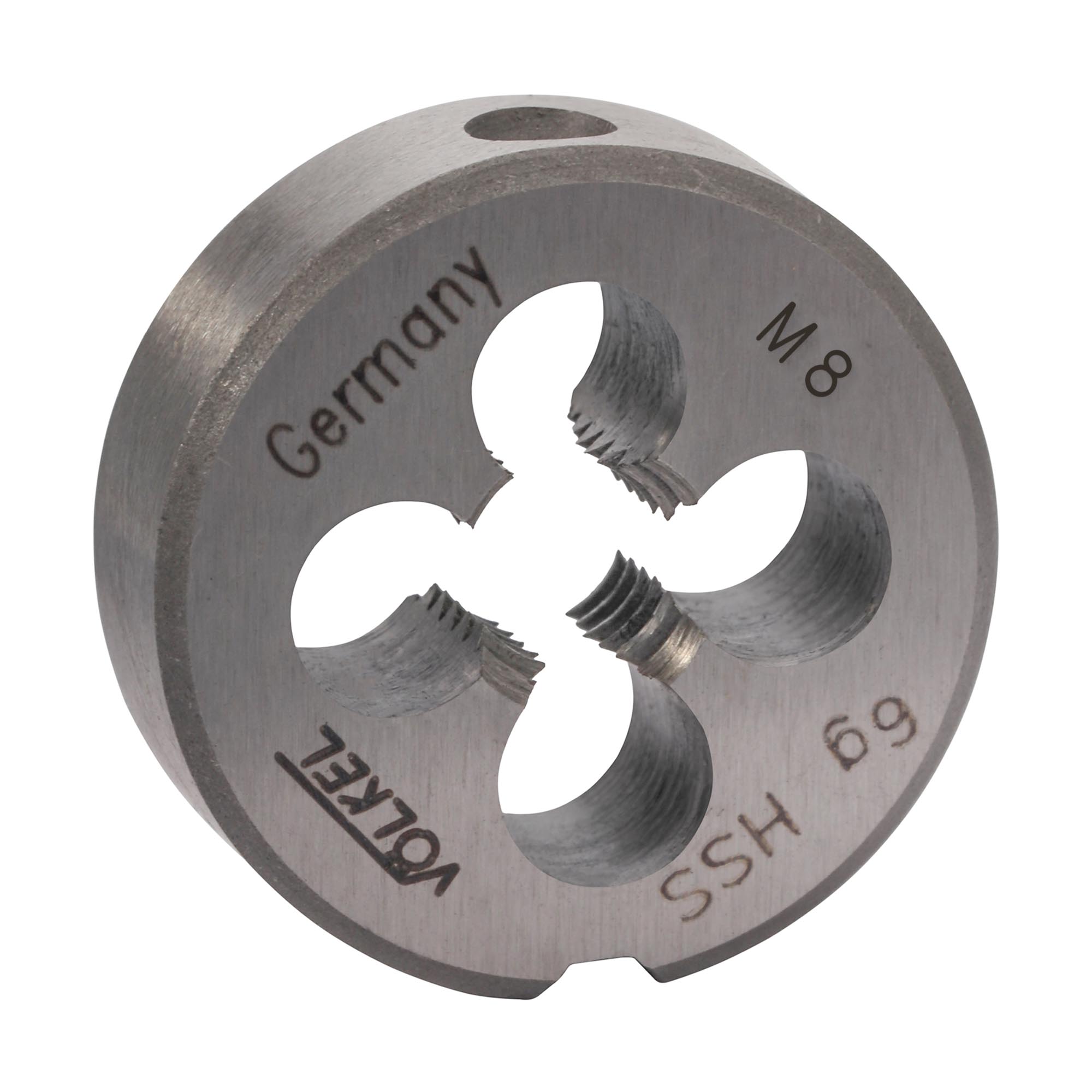 Плашка Volkel предназначена для создания метрической резьбы, с углом профиля 60 градусов. Изготовлена из высококачественной быстрорежущей стали HSS, которая гарантирует прочность и износостойкость. Подходит для обработки заготовок, выполненных из нелегированной и низколегированной стали, алюминия, меди, бронзы, цинка, с пределом прочности до 800MPa.