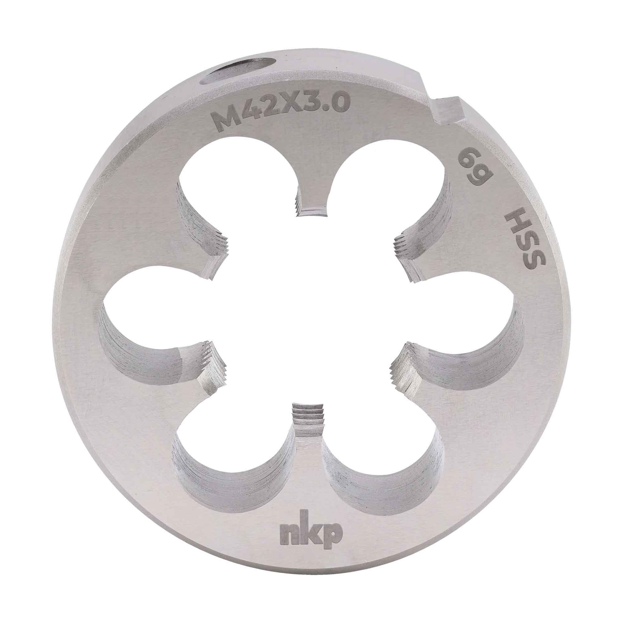 Высокоточная плашка серии NKP для работы с метрической резьбой M42x3 мм! Идеально подходит профессионалам и мастерам-любителям для качественного нарезания наружной резьбы по стандарту EN 22568 из высокопрочной HSS-стали. Достигните идеального результата благодаря классу точности 6g и надежности индийского бренда NKP. Компактные размеры 75х30 мм обеспечивают удобство хранения и использования. Наслаждайтесь точностью и легкостью выполнения работ уже сегодня!
