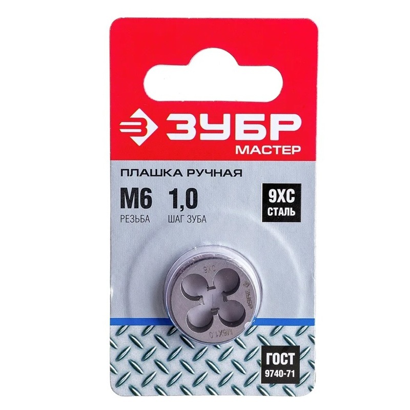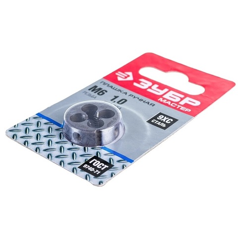 Плашка круглая ручная ЗУБР М6х1.0 мм из стали 9ХС предназначена для нарезания наружной метрической резьбы вручную. Подходит для работы с заготовками диаметром 6 мм и шагом резьбы 1 мм. Сталь марки 9ХС обеспечивает повышенную износостойкость инструмента и его долговечность. Идеально подходит для использования профессиональными мастиками и домашними умельцами при выполнении слесарных работ.