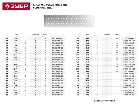 Пластина соединительная ПС-2.0, 60х120 х 2мм, ЗУБР.