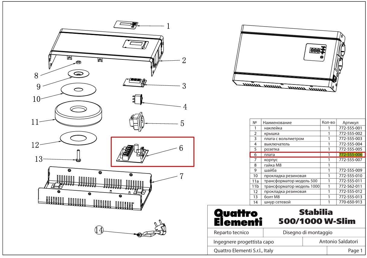 Плата стабилизатора напряжения QUATTRO ELEMENTI Stabilia 500W Slim /2000W Slim (772-555-006)