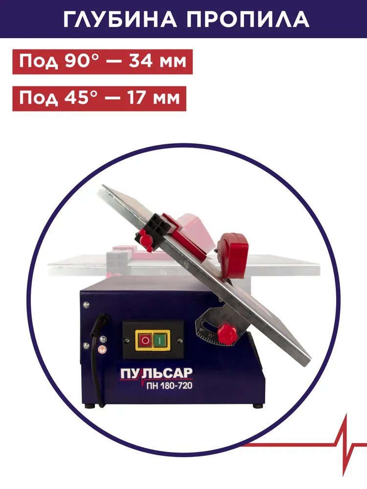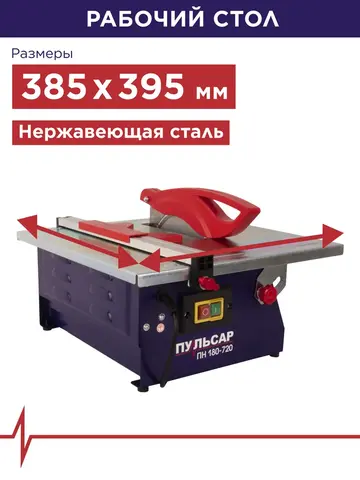 Плиткорез настольный ПУЛЬСАР ПН 180-720 (720Вт, диск 180x22.23мм, стол 385x395мм, пропил 34 мм, 10кг) 791-578
