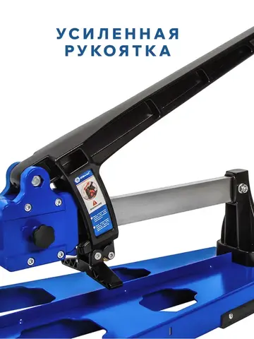 Плиткорез ручной монорельсовый применяется для разрезания керамогранитной и керамической кафельной плитки толщиной до 18 мм. Режущий ролик из твёрдого сплава ВК-8 с титановым покрытием обеспечивает ресурс реза 2 000 метров. Основание – литая широкая рама с подпружиненной поверхностью, которая обеспечивает высокую устойчивость инструмента при работе, неподвижность разрезаемой плитки и, как следствие, аккуратность реза. Две прочные выносные стойки с подпружиненными накладками, могут быть установлены в любом из 3-х положений с каждой из сторон, что позволяет удобно расположить плитку большого размера на плиткорезе для дальнейшего реза. Ходовая каретка на 10 подшипниках обеспечивает плавное перемещение по направляющей и отсутствие люфтов. Оснащён транспортировочными колёсами и рукояткой для быстрой и удобной перевозки.