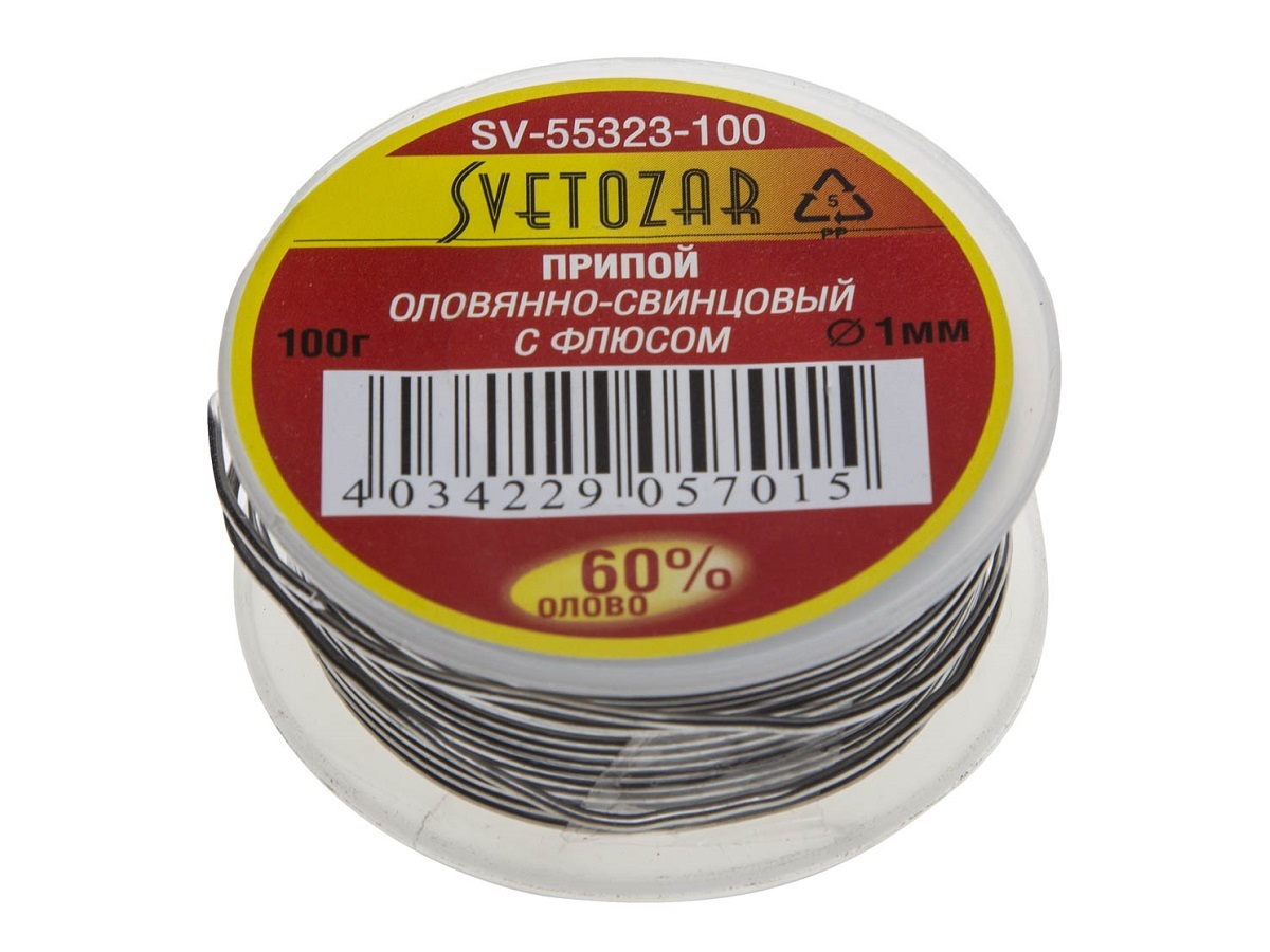 Припой СВЕТОЗАР оловянно-свинцовый, 60% Sn / 40% Pb, 100гр