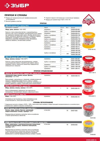 Припой ЗУБР, ПОС 61, трубка с канифолью, 50г, 0,8мм