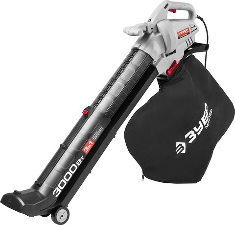 Пылесос садовый (воздуходувка) электрический, ЗУБР ЗПСЭ-3000, 8000 - 15000 об/мин, 160-270 км/ч, мусоросборник 45л, 13.5 м3/мин, 3000 Вт.