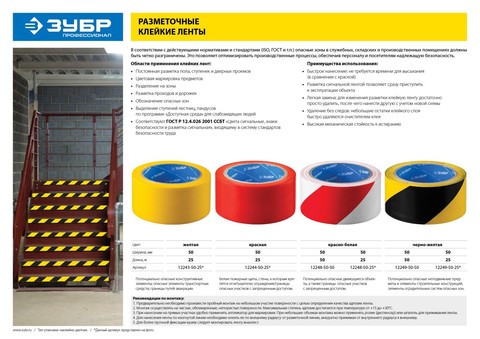 ЗУБР 50 мм, 25 м, желто-черная, разметочная клейкая лента, Профессионал (12249-50-25)