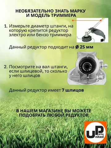 Редуктор для триммера UNITED PARTS?25?7T – надежный помощник вашего садового оборудования! Подходит для замены изношенных деталей, обеспечивает стабильную работу техники. Качество сборки и материалов соответствует мировым стандартам. Изготовление осуществляется в Китае – мировом центре инновационных технологий для садовой техники. Подходящий выбор для тех, кто ценит эффективность и экономичность покупок!