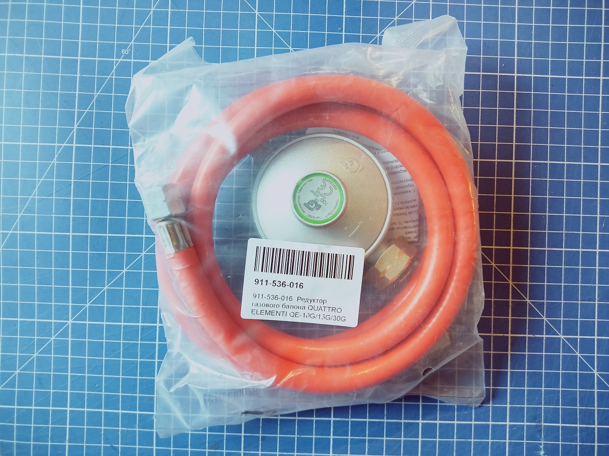 Редуктор газового балона QUATTRO ELEMENTI QE-10G/15G/30G (0,7 bar) с шлангом (911-536-016)