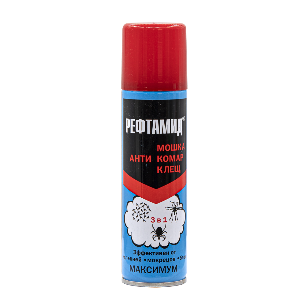 Аэрозоль «Рефтамид Максимум» — надёжная защита вашего дома и участка! Безопасно и эффективно защищает территорию от комаров, мошек, клещей и других насекомых (активное вещество – 28% ДЭТА). Действует мгновенно, сохраняя эффект до 4 часов после обработки помещения или до 4 недель при обработке территории! Удобен в использовании благодаря аэрозольной упаковке объемом 147 мл. Подходит как для помещений, так и открытых пространств, идеален для дачи и загородного отдыха. Защитите себя и свою семью от надоедливых кровососов с продукцией известного бренда «Рефтамид».