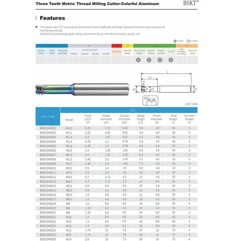Представляем новинку от бренда BSKT – высокопрочная резьбофреза M 5,0х0,8! Сверхтвёрдый материал DLC (52 HRC), трёхвитковая конструкция обеспечивают долгий срок службы инструмента и идеальную чистоту обработки. Уникальный угол заточки 60° обеспечивает комфортное применение при работе с различными материалами. Компактная длина 50 мм удобна даже в труднодоступных местах. Сделано в Китае. Пакет включает одну фрезу – идеальный комплект начинающего мастера или дополнение к профессиональному инструменту.