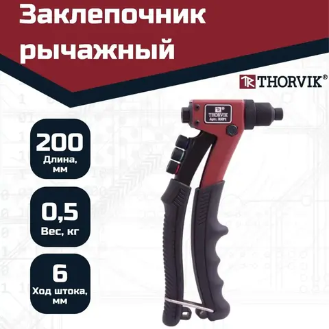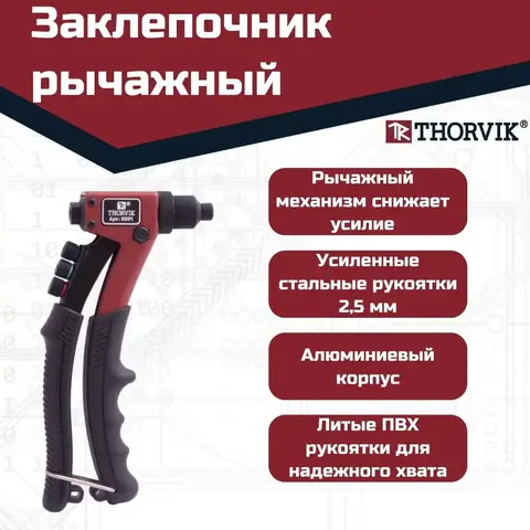 Thorvik RHP1 - это надежное решение для быстрого монтажа вытяжных заклепок различных размеров (от 2.4 до 4.8 мм). Инструмент обладает прочным корпусом и эргономичными ручками, обеспечивающими удобство работы даже при длительном использовании. Идеально подходит как для профессионального использования, так и для домашнего ремонта.