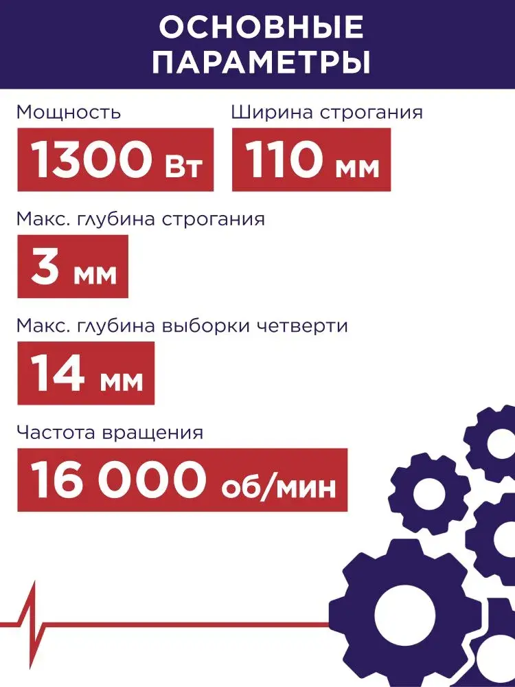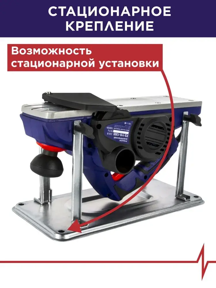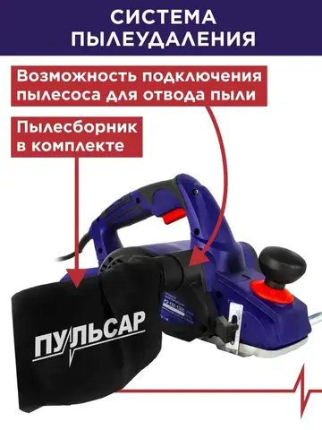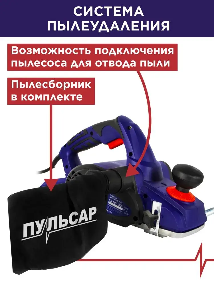 Рубанок электрический ПУЛЬСАР РЭ 110-1300 (1300Вт, 110мм, 0-3 мм, 16000 об/мин, четверть 14 мм, 5 кг) - предназначен для строгания плоских деревянных поверхностей, снятия фасок и выборки четверти.