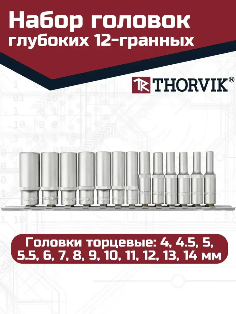 Торцевой набор головок S11S2213SM от бренда Thorvik — идеальный помощник мастера! Любые работы по дому или строительству станут удобнее и качественнее! Глубокие 12-гранные головки (4–14 мм) с надёжным креплением на держатель 1/4"DR обеспечивают точный доступ к труднодоступным местам и надежное удержание крепежа. Выбирайте качество и удобство вместе с Thorvik!