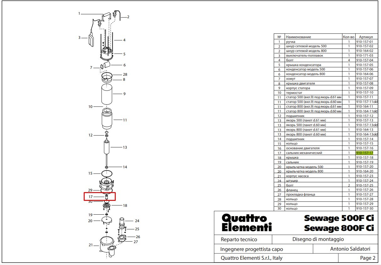 Сальник механический QUATTRO ELEMENTI Sewage 500F Ci (910-157-17)