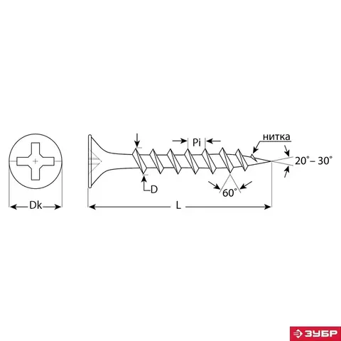 ЗУБР 152 х 4.8 мм, 400 шт., СГД саморезы гипсокартон-дерево 300035-48-152 Профессионал.