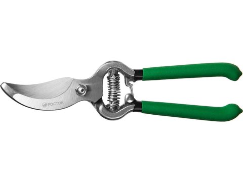 Секатор цельнокованый, РОСТОК 423005, рез до 18мм, 200мм - применяется для обрезки веток деревьев и кустарников, а также стеблей цветов. Цельнокованая конструкция гарантирует высокую прочность и длительный срок службы изделия. Остро заточенное и закаленное лезвие, изготовленное из углеродистой стали, обеспечивает чистый, ровный и легкий рез. Виниловое покрытие ручек делает процесс обрезки веток более комфортным.