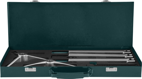 Съемник со скользящими составными захватами, откованными из двух марок легированных сталей, износостойкой для лапок захвата и высокопрочной для направляющих. Набор комплектуется двумя траверсами, позволяющими применять, в зависимости от выполняемой работы, 2 или 3 захвата, диаметр захватываемой детали 40-120 мм. Для удобства детали набора хранятся в оригинальном пластиковом кейсе.