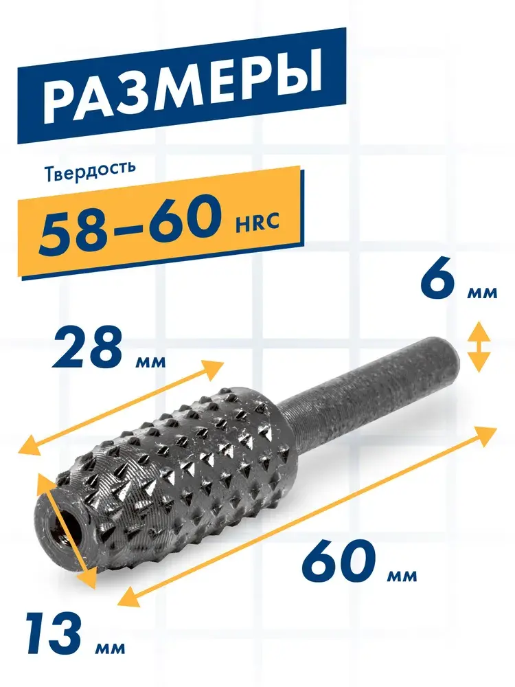 Шарошка по дереву ПРАКТИКА отличается высокой прочностью благодаря стальной конструкции и особой конусной усеченной форме диаметром 13 мм и общей длиной 28 мм. Подходит для ручного и электрического инструмента с посадочным местом 6 мм. Удобна для обработки сложных поверхностей и фигурного вырезания. Материал подходит любой – от мягких пород дерева до твердых заготовок. Хвостовик надежно фиксируется, обеспечивая стабильную работу без биения. Пакетная упаковка обеспечивает сохранность изделия при транспортировке и хранении.