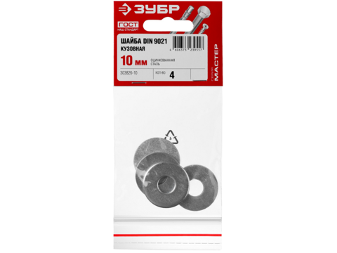 ЗУБР DIN 9021, 10 мм, цинк, 4 шт, кузовная шайба (303826-10)