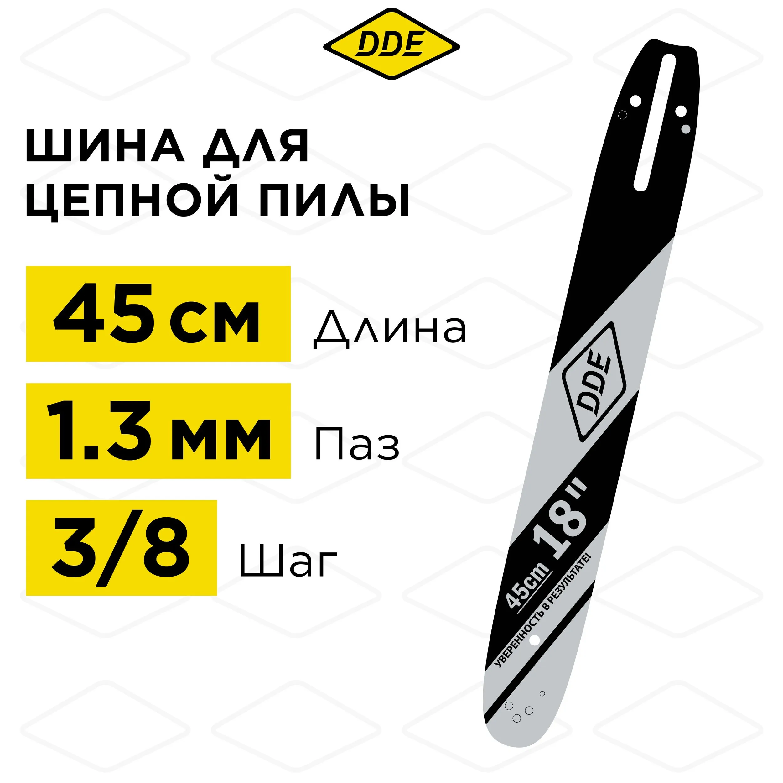Шина пилы цепной сварная DDE 18"/ 45 см 3/8"-1,3-62 зв (для цепи 91P/VS/VXL)(180SPEA041) (249-945)