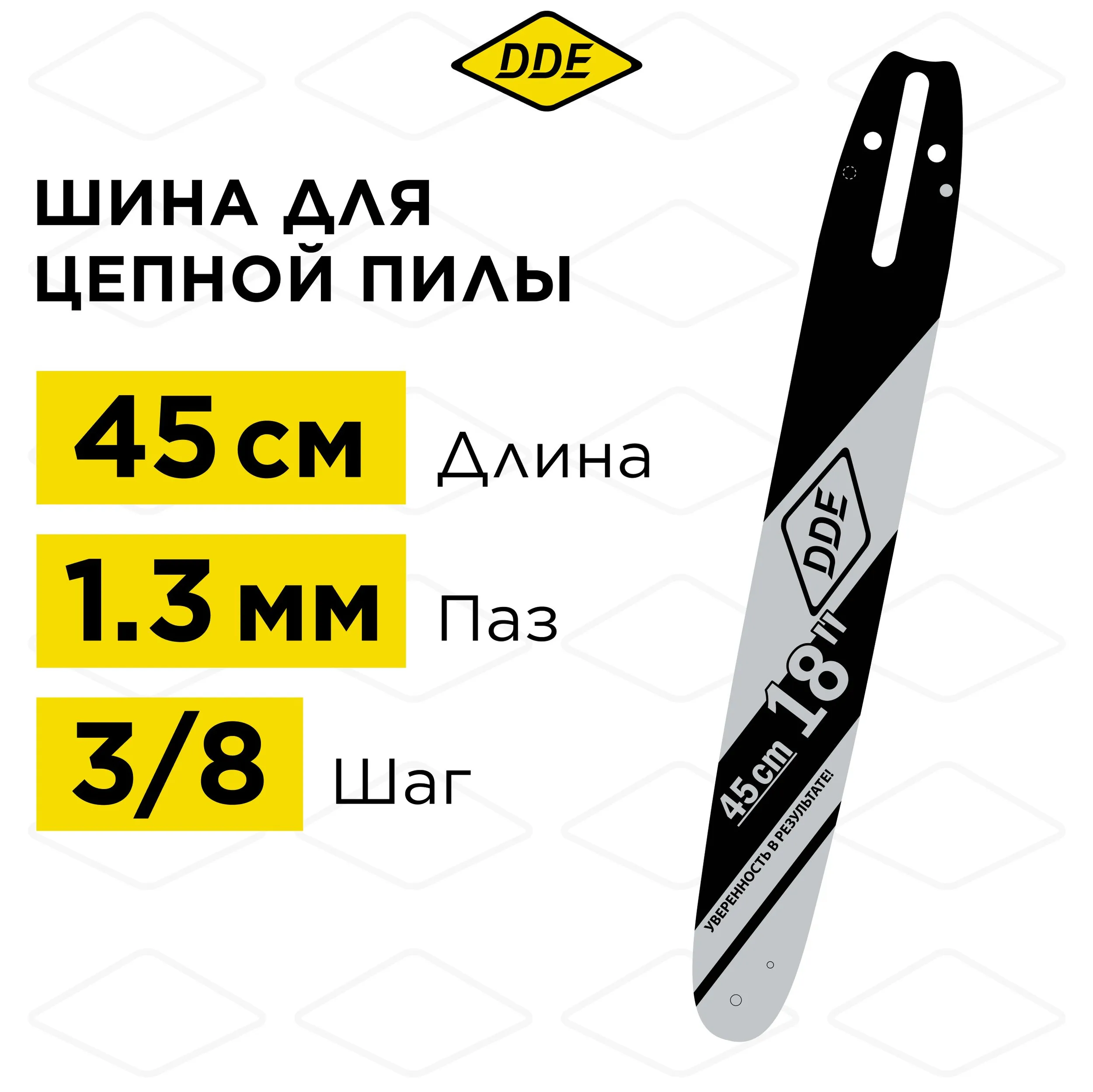 Цепная шина DDE 18''/45см – это качественный инструментальный элемент, созданный специально для комфортной работы с бензопилами! Шину отличает шаг цепи 3/8", оптимальная ширина паза 1,3мм и надежное количество звеньев - целых 62. Сварная конструкция обеспечивает прочность и долговечность изделия при относительно малом весе всего 0,2кг. Удобна в использовании благодаря точной длине 45см/18". Уверенно выполняйте любые задачи вместе с этим надежным помощником!