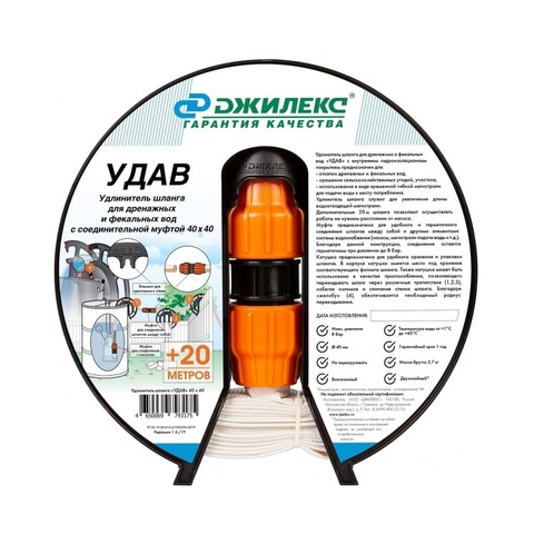 Удлинитель шланга служит для увеличения длины водоотводящей магистрали. Дополнительные 20 м шланга позволяют осуществлять работы на нужном расстоянии от насоса. Предназначен для отвода дренажных и фекальных вод, орошения сельскохозяйственных угодий и участков. Используются в виде временной гибкой магистрали для подачи (отвода) воды к месту потребления (сброса). Катушка, идущая в комплекте, обеспечивает удобное хранение шланга. Может быть использована в качестве приспособления, позволяющего перекидывать шланг через различные препятствия.