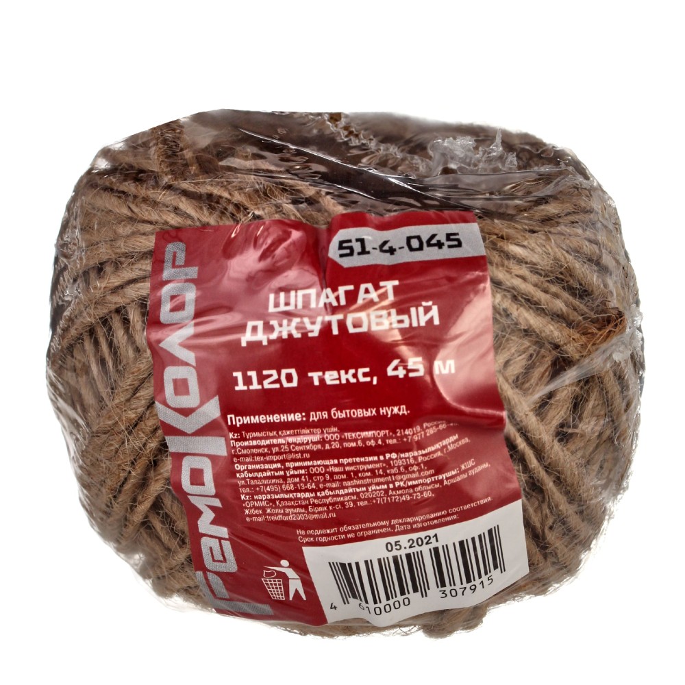 Шпагат из натурального джута от бренда «РемоКолор» — идеальный выбор для ваших строительных и ремонтных работ! С прочностью и надежностью этого шпагата вам будет легко выполнять любые задачи: 1120tex обеспечивает оптимальную толщину и устойчивость к нагрузкам. Длина мотка составляет удобные 45 метров, что позволяет всегда иметь под рукой необходимый запас. Натуральное происхождение материала гарантирует экологичность использования. Добавьте качество в свой дом вместе со шпагатом «РемоКолор»!