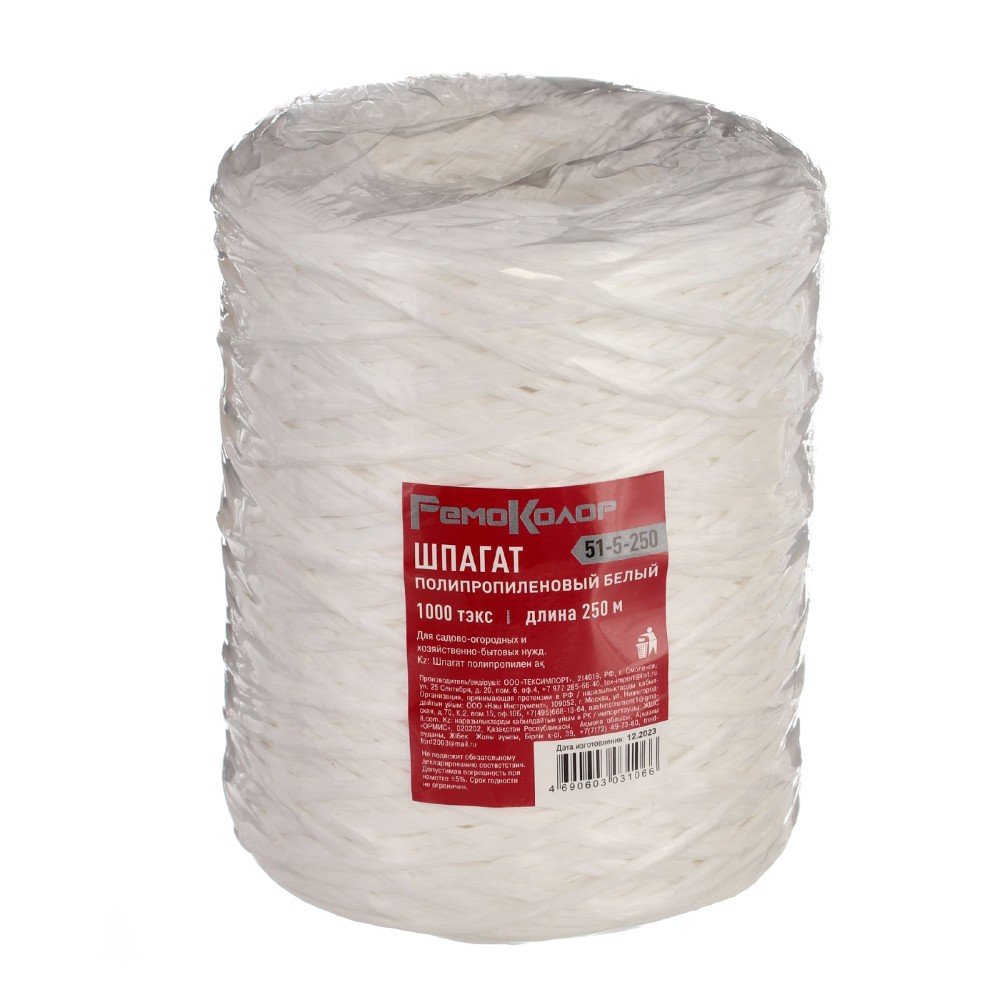 Шпагат полипропиленовый РемоКолор 51-5-250 — идеальный выбор для ваших строительных и садовых нужд! Благодаря устойчивости к морозам до -50°C, влаге, агрессивным средам и гниению, он станет надежным помощником в любых условиях. Легкий вес и высокая прочность позволяют использовать его эффективно и удобно. Купите сейчас по выгодной цене и оцените качество продукции RemoColor сами!