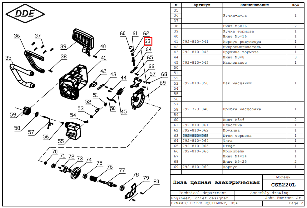 Шток механизма тормоза DDE CSE220L/240L/260L