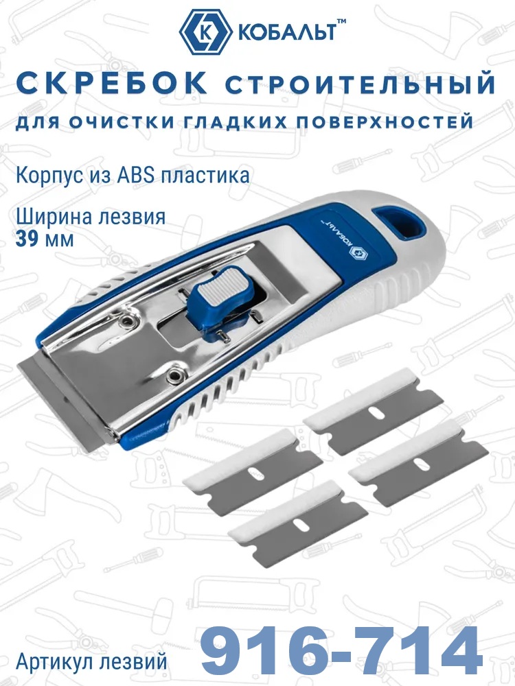 Скребок КОБАЛЬТ строительный (лезвие 39мм) + 5 лезвий (916-707)